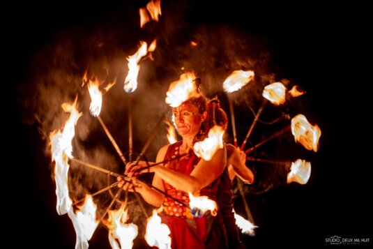 Laissez-vous envoûter par ce rite hors du temps, lors duquel chorégraphies de torches, bolas, éventails et autres objets enflammés s’enchaînent jusqu’au final magique embrasant l’espace !